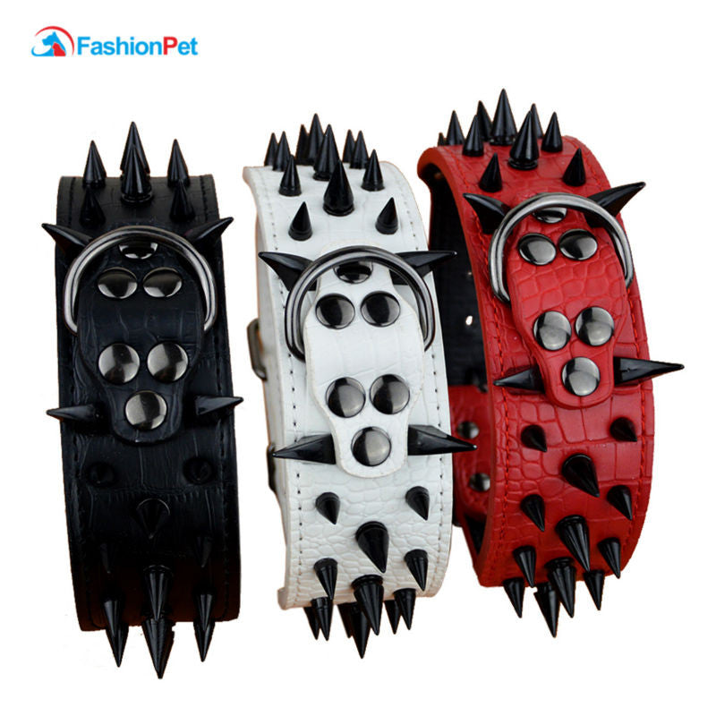 Cool Sharp Spiked Studded PU Leather Dog Collar for Medium Large Dogs PitBull Mastiff Boxer Bully