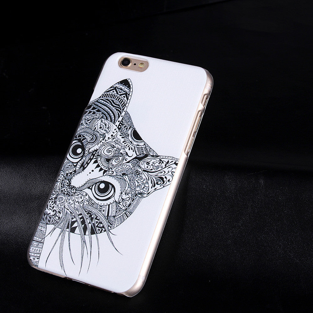 Cute Cat Case For iPhone 6 6S Fashion Phone Back Skin Cases Black Cat Painted Hard PC Case Mobile Phone Back Skin Cover 2016
