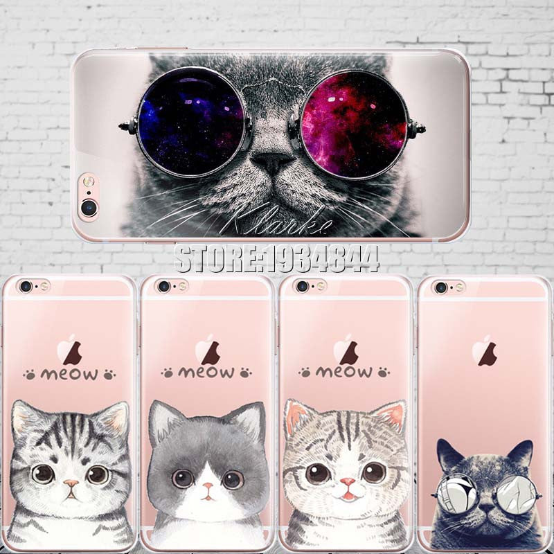Cute Cat with Glasses Pattern Case Cover For iphone 6 6S 5 5s se 7 7PlusTransparent Soft Silicone Cell Phone Cases