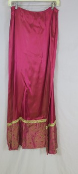 Dave & Johnny Bright Pink Satin Long Skirt 9/10 Vintage 70's/80's gold detail