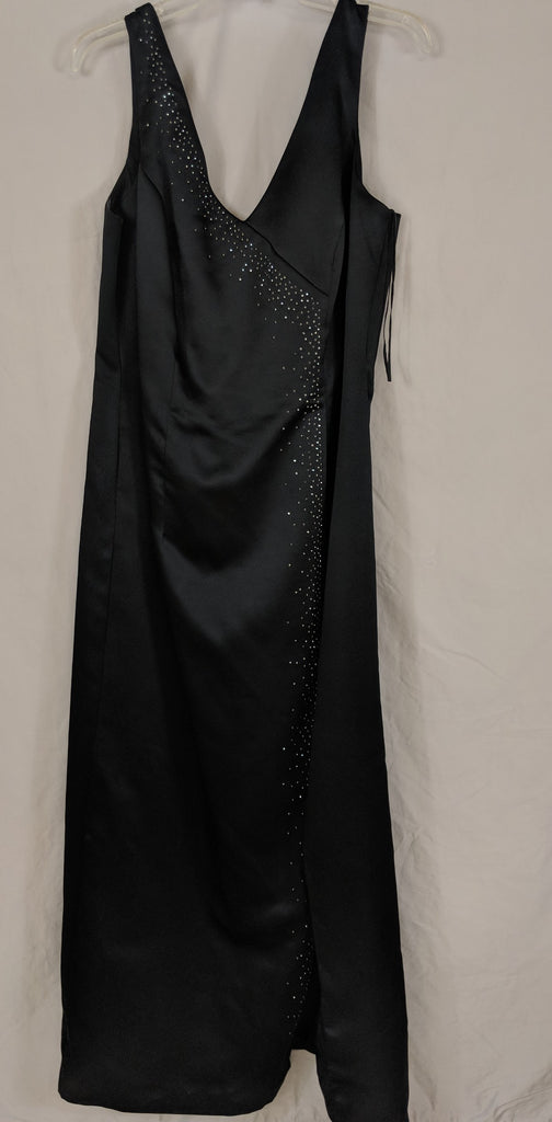 Dave & Johnny by Laura Ryne Black Satin V-neck Dress with rhinestone embellishments
