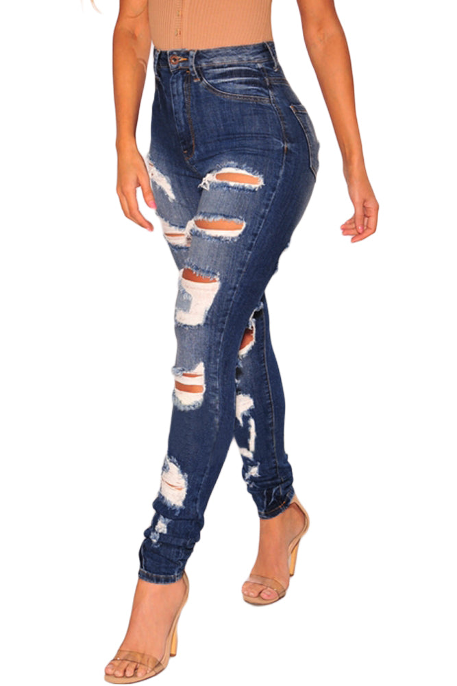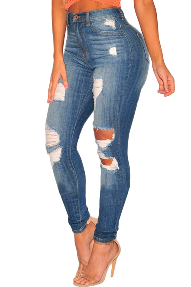 Denim Destroyed Ripped High Waist Skinny Jeans