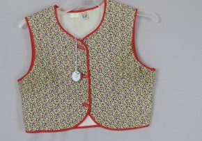 Diolen Cotton quilted vest, red trim, country boho floral peasant print blue/yellow/red buttons may be bakelite