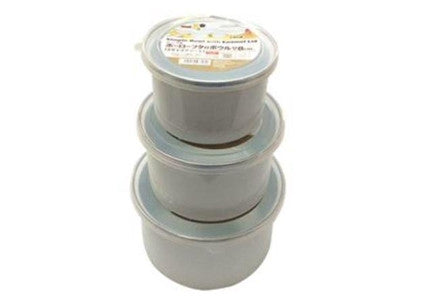 Enamel bowl with lid, 3 size assort, 3.15, 3.94, 4.72 in