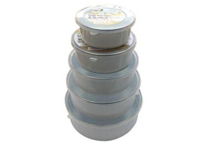 Enamel bowl with lid, 4 size assort, 3.94, 4.72, 5.51, 6.3 in