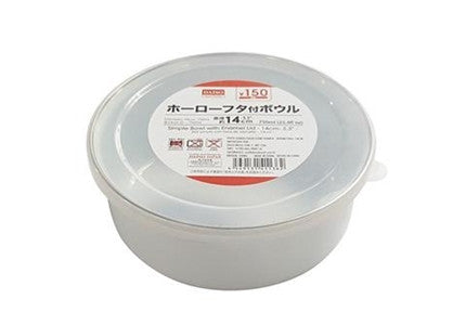 Enamel bowl with lid, 2 size assort, 3.94, 4.72 in