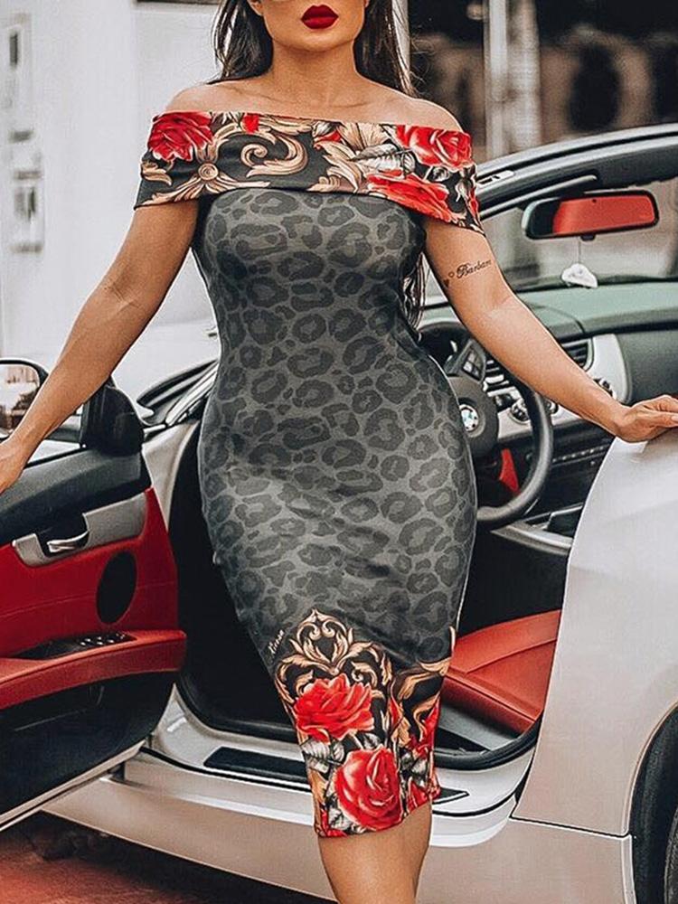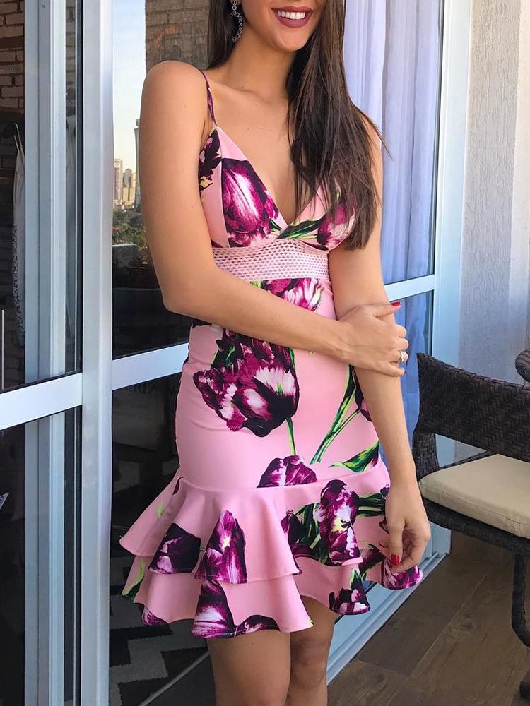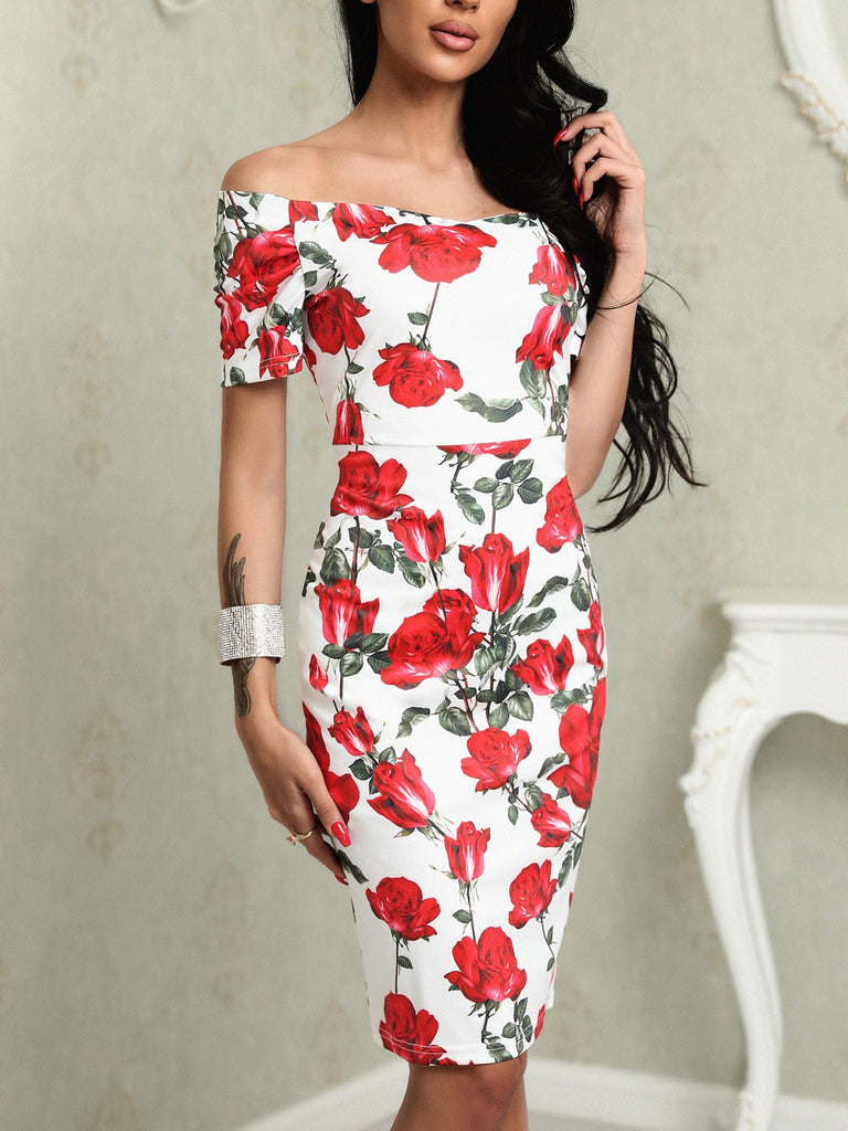 Floral Flounce Bardot Fishtail Bodycon Dress