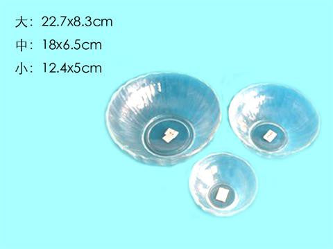 Glass bowl, wave, 3 size assort, d8.66 x h3.15, d6.54 x h2.56, d4.45 x h1.97 in