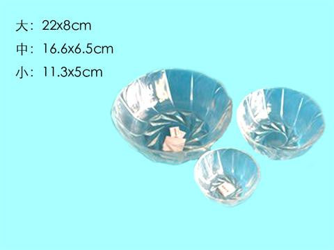 Glass bowl, wave, 3 size assort, d8.94 x h3.27, d7.09 x h2.56, d4.88 x h1.97 in