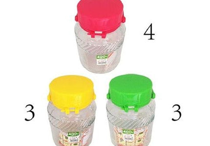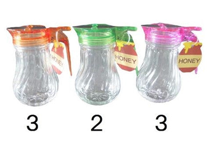 Glass honey pot, 3 assort, 3.5 x 2.3 x 4.4 in
