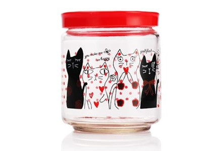 Glass jar w/plastic cap, cat, dia 3.4 x h 4.1 in