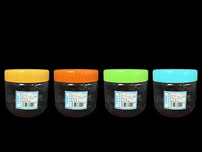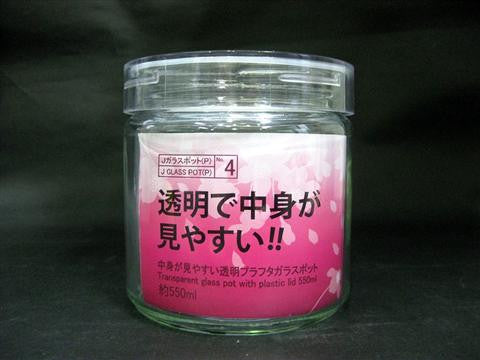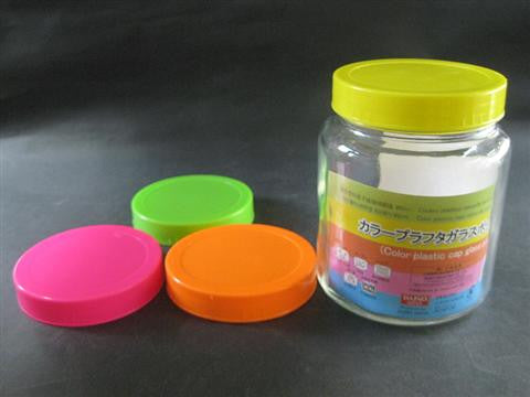 Glass pot w/plastic cap, 4 assort, d4.5 x h5.5 in, 32.12 fo oz