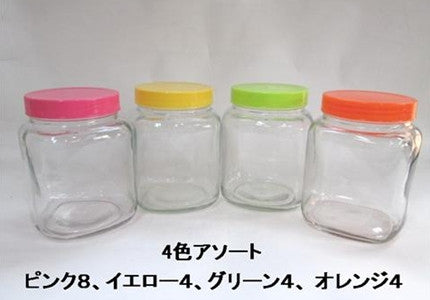Glass pot w/plastic cap, 4 assort, d4.33 x h4.4 in, 28.22 fl oz