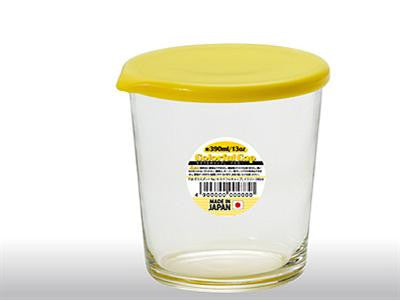 Glass pot w/cap, yellow, d4.05 x h3.7 in, 13.53 fo oz