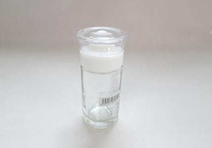 Glass pot w/plastic cap, d3.93 x h4.13 in, 18.6 fl oz