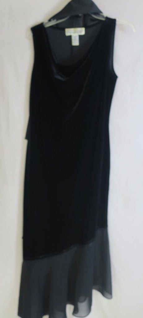 Glatter & Sims Black Longsleeve Draped long Dress with Sequin Shirt Detailing, Size 14, Vintage 80's