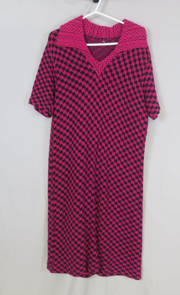 Houndstooth Pink and Black Vintage 70's/60's Mod Shift dress short sleeve Sweater Dress
