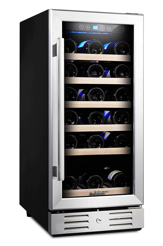 Kalamera 15'' Wine Cooler 30 Bottle Built-in or Freestanding with Stainless Steel & Double-Layer Tempered Glass Door and Temperature Memory Function