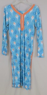 Aqua Sea Blue Cotton Long Tunic Embellished Embroidered triangle print, scallopped hem, white, rhinestone detail