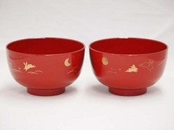 Lacquer ware soup bowl, rabbit, red, d4.4 x h2.68 in