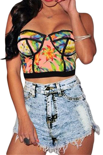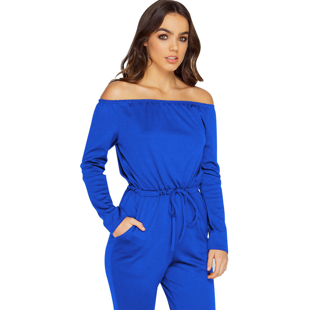 Leisure Loose Tie Elasticity Blue Strapless Romper Pants