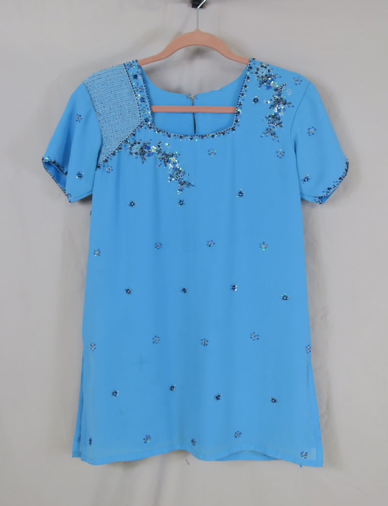 Light Blue Periwinkle Sequin Short Sleeve India Pants Tunic 2 Piece Set