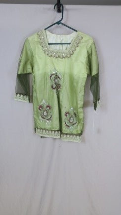 Light Bright Green 2 Piece Square neck tunic lace up back red lace rhinestone