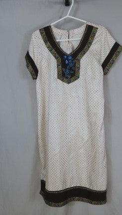 Light Peach Polka Dot Tunic India Detailed Sequin Collar Blue Brown