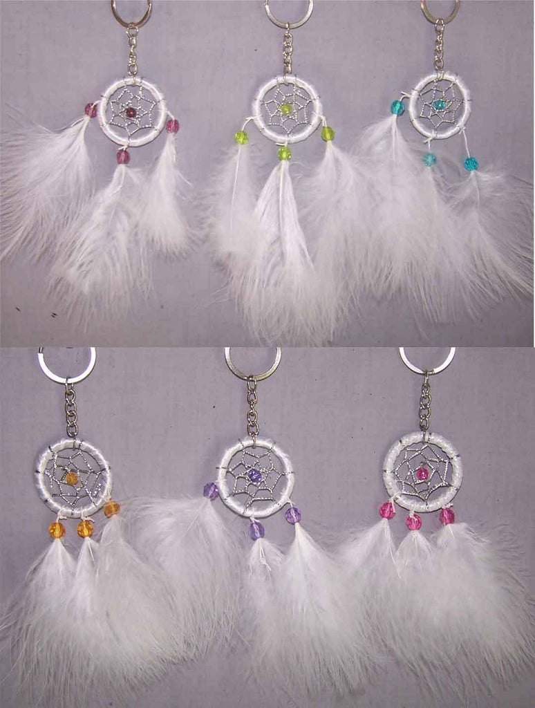 Native Pride Tribal Dream Catcher Key Chains White Feathers 6Pc Lot (NPDC222 ^*)