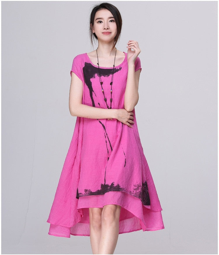 new fashion summer style cotton linen plus size vintage print women casual long loose dress vestido femininos party 2016 dresses