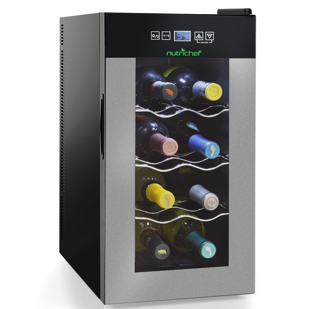 Nutrichef 8 Bottle Thermoelectric Wine Cooler Refrigerator | Red, White, Champagne Chiller | Counter Top Wine Cellar | Quiet Operation Fridge | Touch Temperature Control