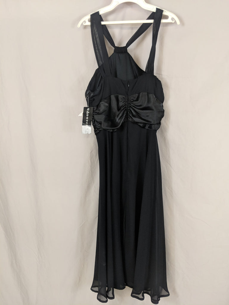 NWT Connected Apparel 90's Halter dress black sheer satin cinched ruched waist