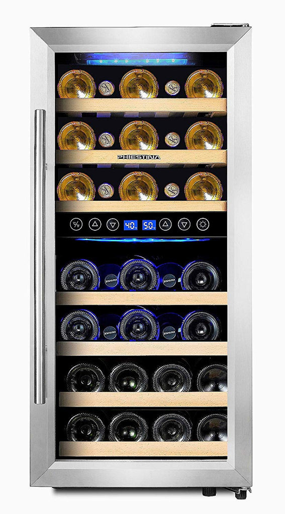 Phiestina PH-CWR100SP 33 Bottle Wine Cooler Dual Zone Compressor Cooling | Stainless Steel & Glass Door with Handle