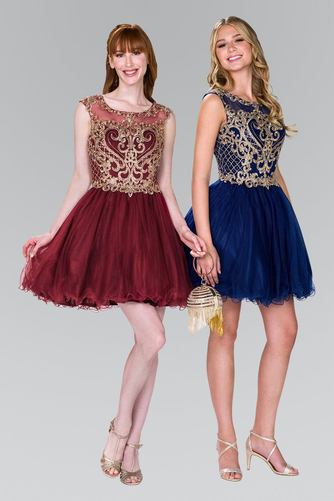 Beautiful beaded gold embroidered bodice short homecoming dress GLS #GS2381