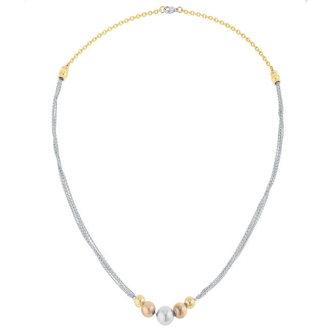 Bella Tri-Tone Stainless Steel Layered Ball Statement Necklace