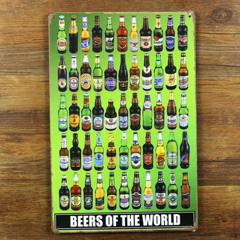 Beers of The World Tin Sign Metal Wall Art Wall Decor