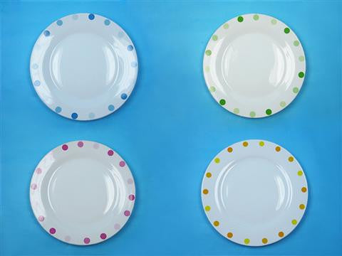 Porcelain plate, polka dot, 4 color assort, d9.45 in