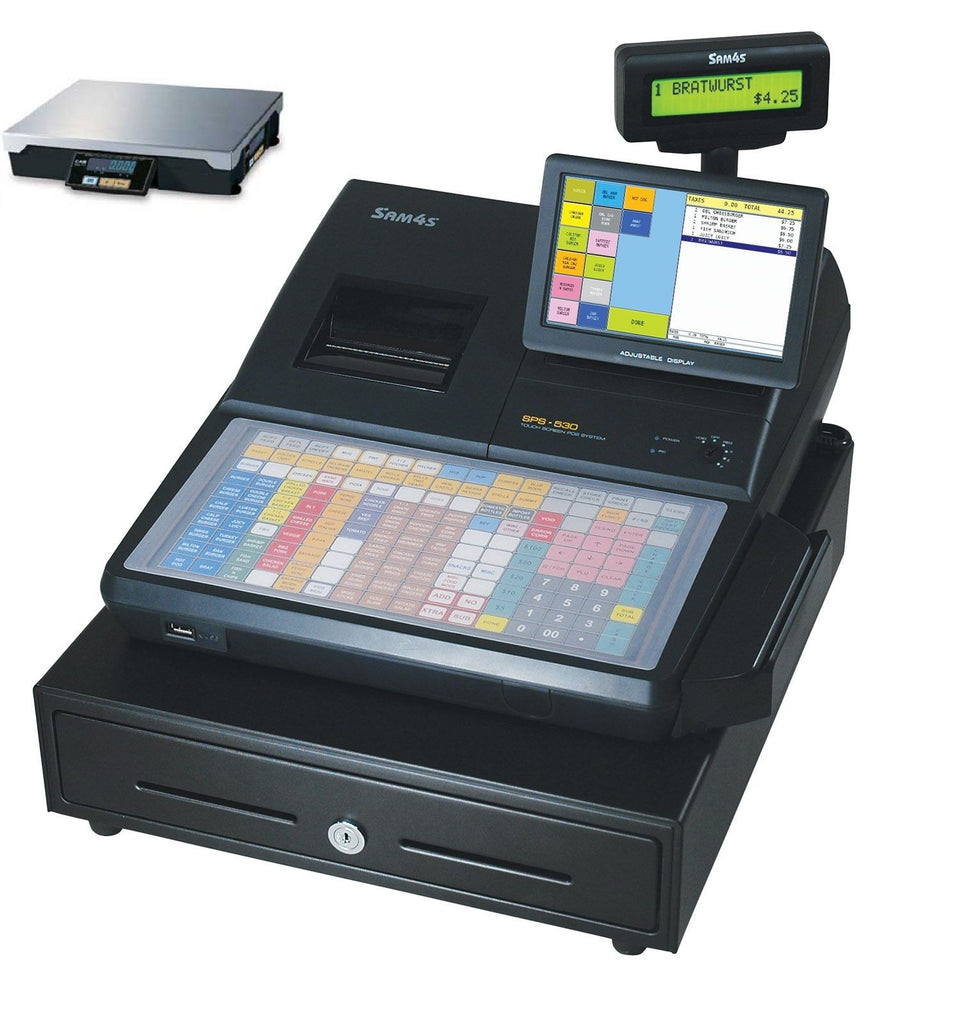 Produce SAM4S SPS-530 w Touch Screen Cash Register w/ CAS PD-II POS Scale