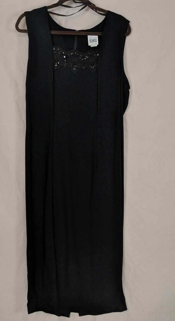 R & M Richards by Karen Kwong size 16 black rhinestone lace embellished neckline sleeveless
