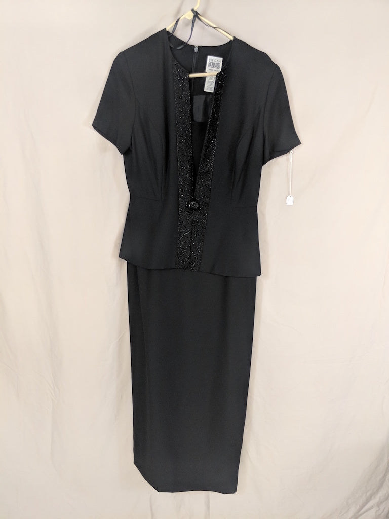 R&M Richards by Karen Kwong size 8 Sequin Black Short sleeve dress modest classic V-neck