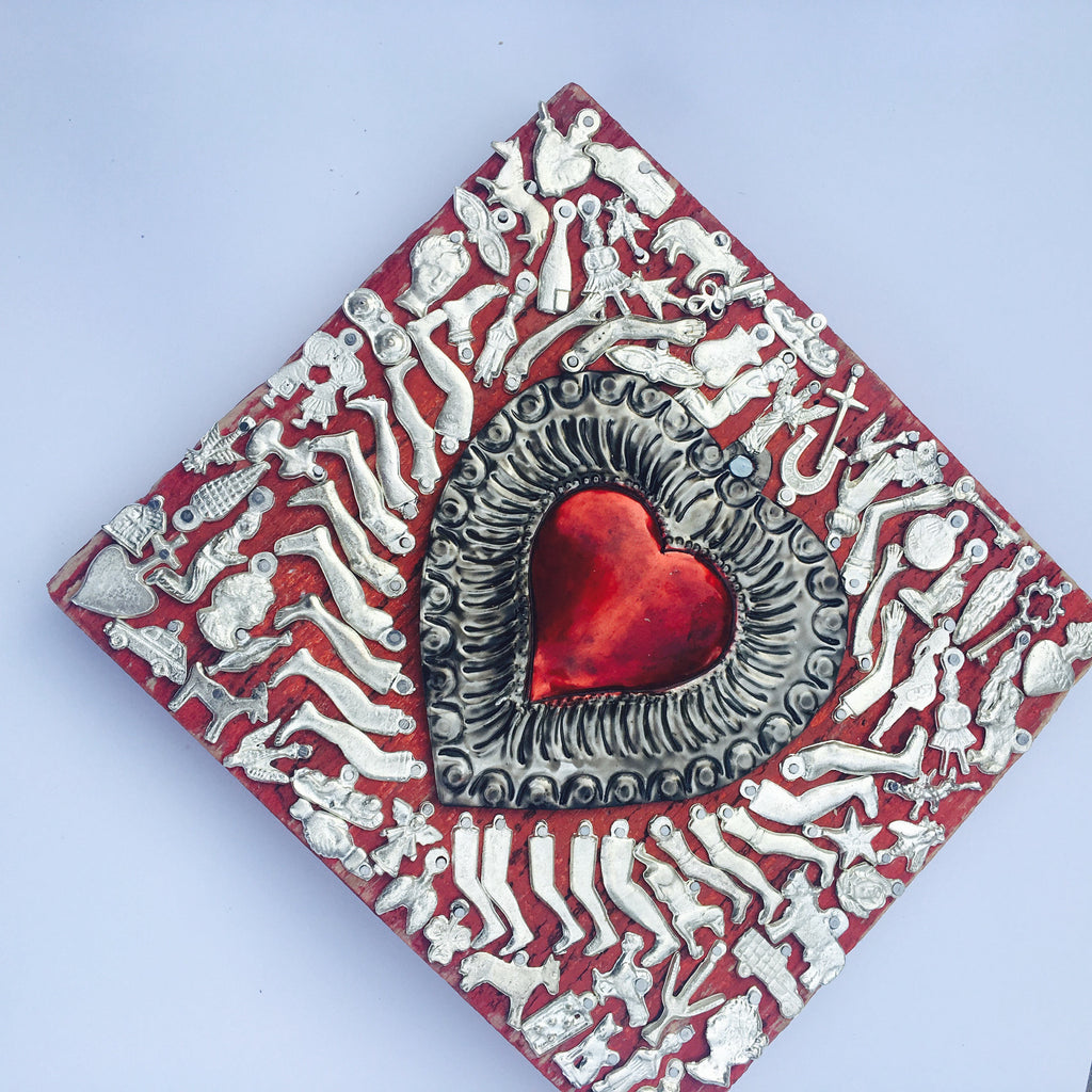 Sacred Heart-Milagro-Mexican Folk Art- Brings blessings of love, compassion, peace & prosperity-Create Sacred Space-For Meditation Room