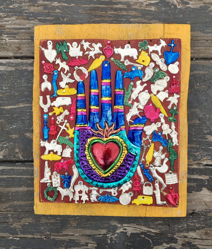 Sacred Heart Milagro-Mexican Tin Hand-Milagros-Folk Art-Shrine Altar- Sacred Space Meditation Room