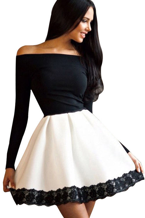Sexy Black And White Long Sleeves Off Shoulder Lady Fashion Dress