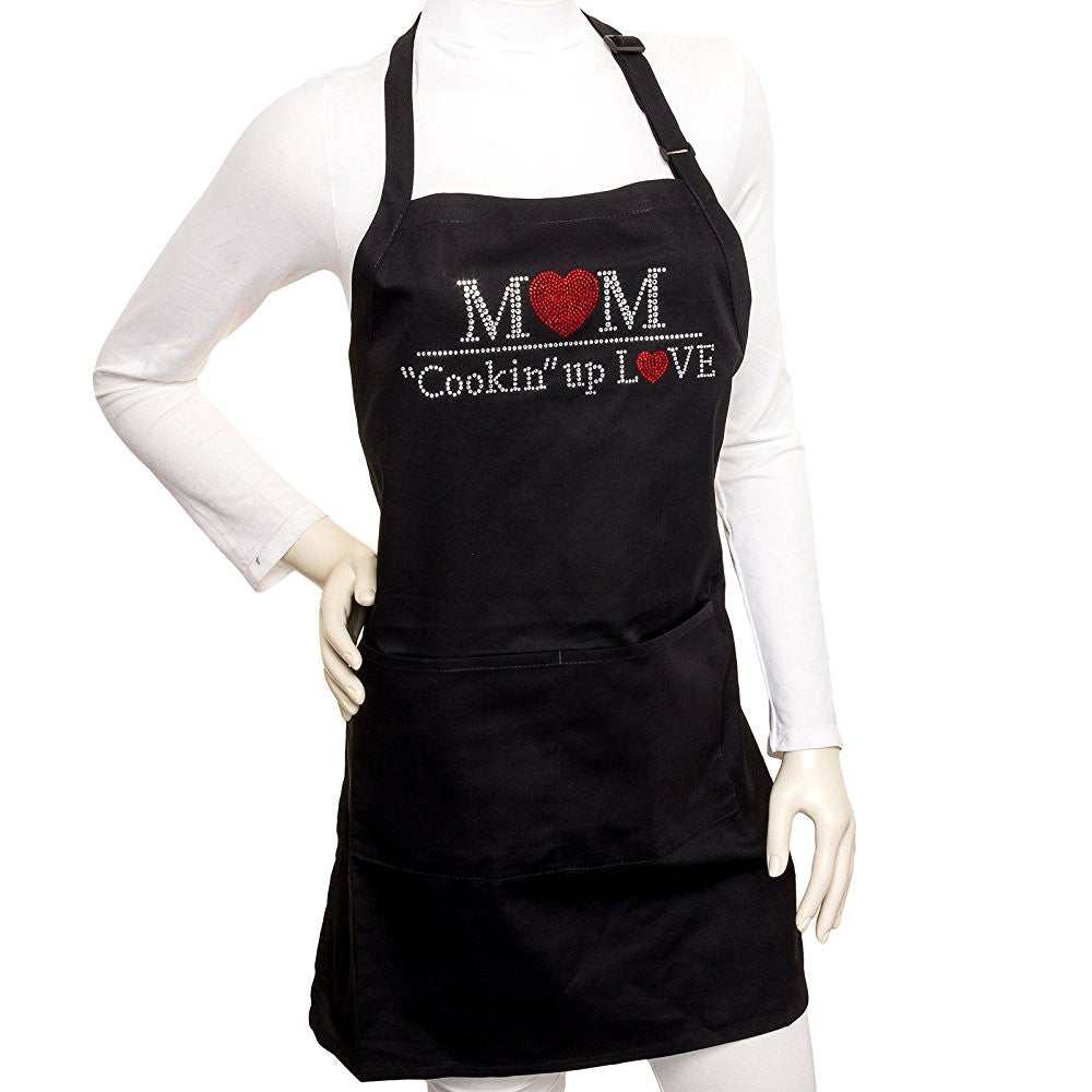 Bling Rhinestone Mom Cookin' Up Love Novelty Apron