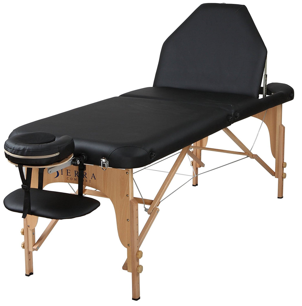 Sierra Comfort Adjustable Back Rest Portable Massage Table, Black
