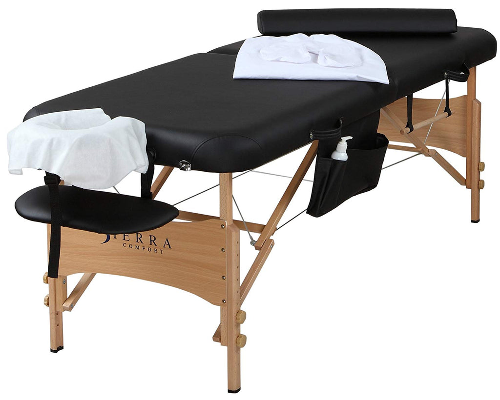 Sierra Comfort All-Inclusive Portable Massage Table with New Accessory Package, Black