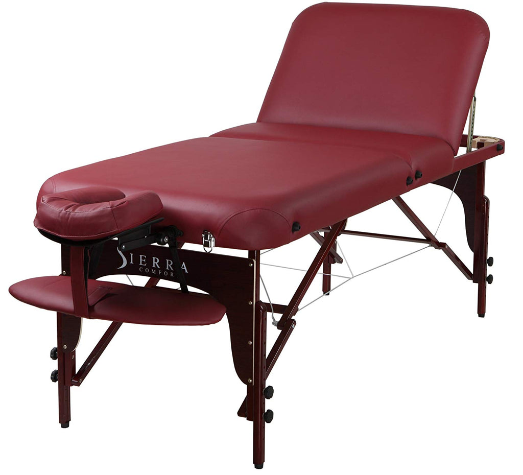 Sierra Comfort Premium Adjustable Backrest Portable Massage Table, Burgundy