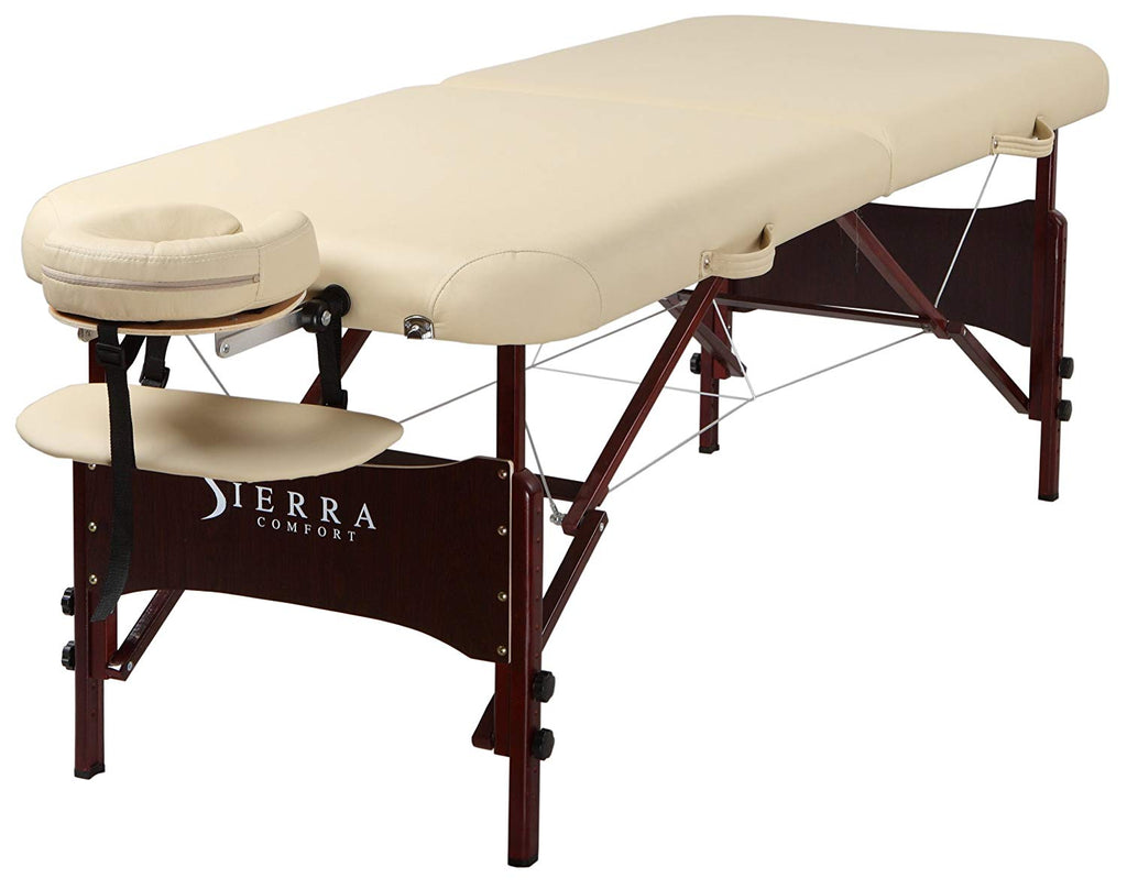 Sierra Comfort Preferred Portable Massage Table with Mahogany Finish, Cream