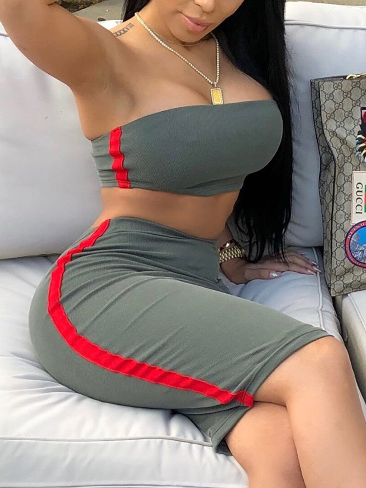 Short Sleeves Pinstripe Tee with Diagonal Ruffled Detail
