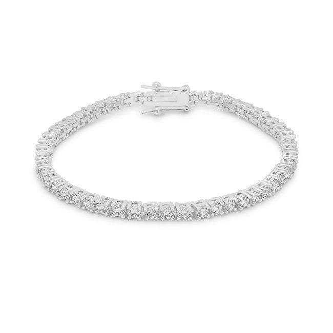 Silvertone Finish Victorian Cubic Zirconia Tennis 7 Inch Bracelet